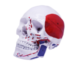 Modelul de mulaj didactic craniu cu insertii musculare numerotat este un instrument educațional folosit în studiul anatomiei umane. Acest tip de mulaj este conceput pentru a oferi o reprezentare detaliată și precisă a structurii craniului și a modului în care mușchii se atașează de acesta. Craniul cu insertii musculare este un instrument valoros în educația anatomică, oferind o modalitate practică și vizuală de a studia structurile complexe ale craniului și ale inserțiilor musculare.